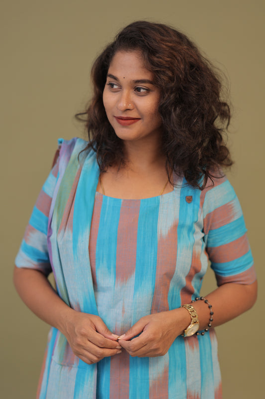 PREMIUM-KORA SILK navy blue Kurti set