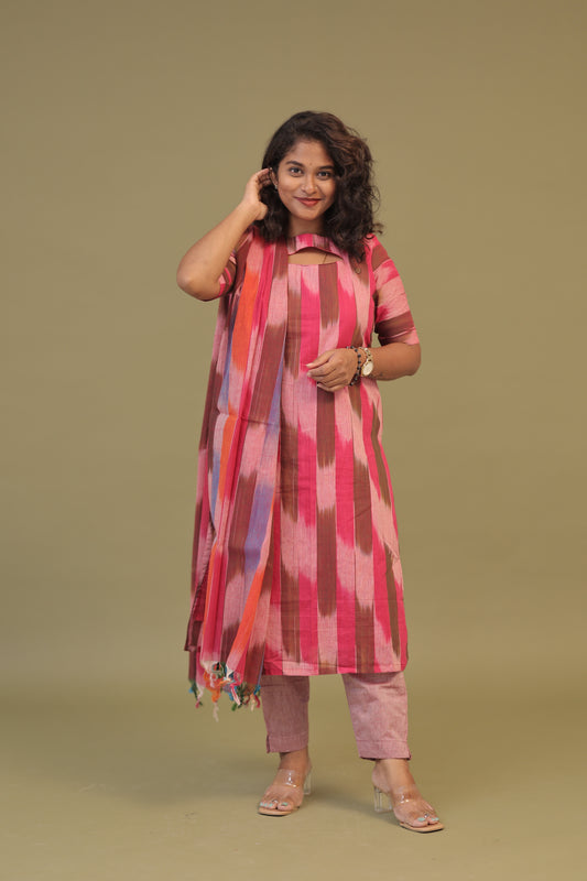 Premium-GHICHA TUSSAR -PINK SUIT