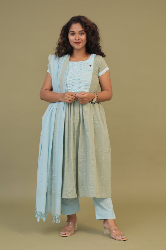 LUX-NIRANJANA-OLIVE-JAMDHANI-3 pc set