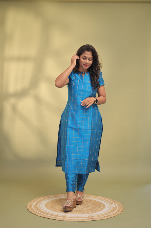 OFFICE WEAR-COTTON-Gown-BLUE SAPPHIRE