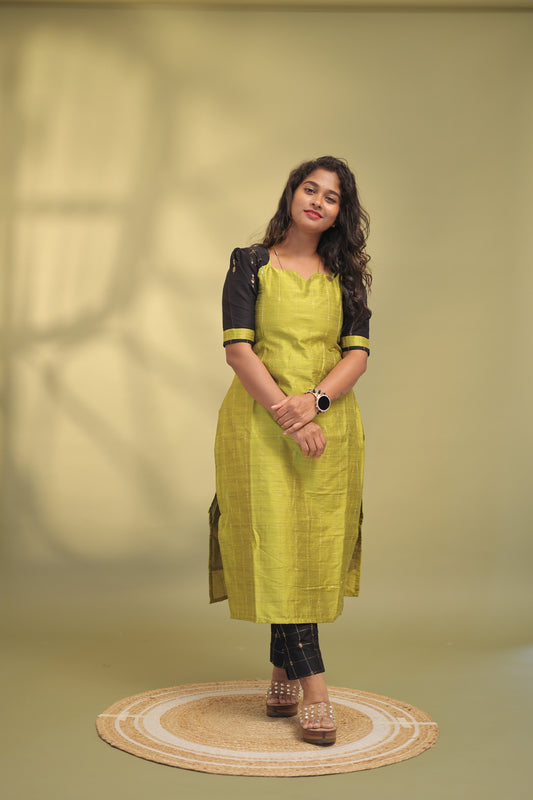 OFFICE WEAR-COTTON-Gown-YELLOW JADE