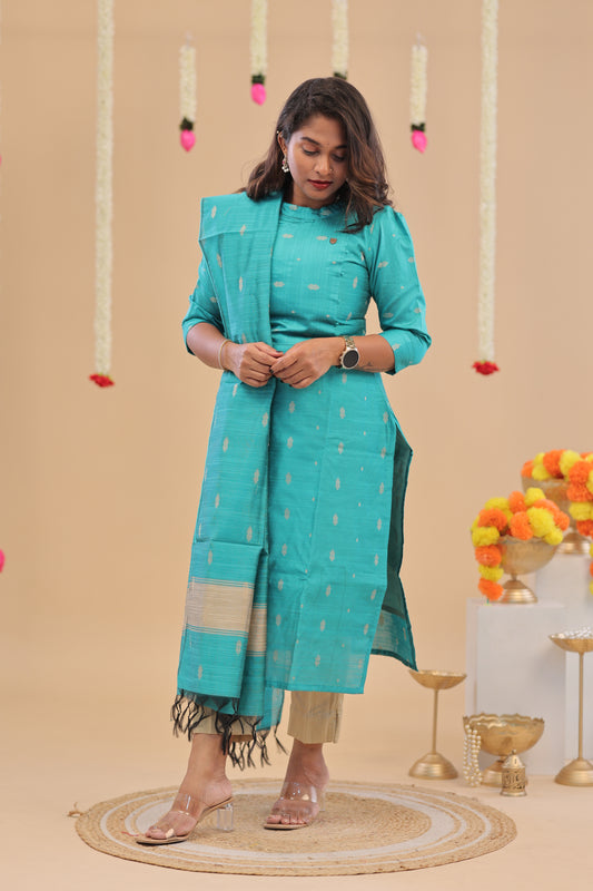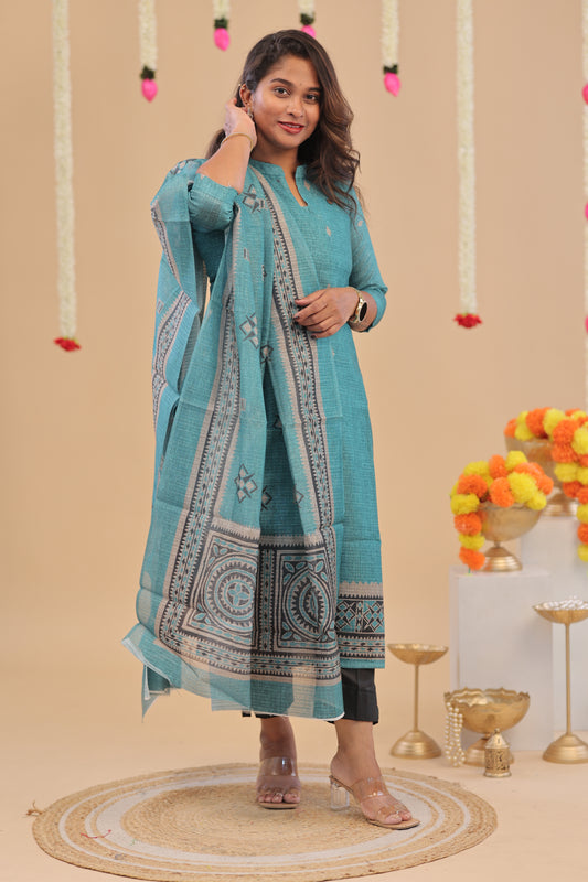 SEMI JUTE - sky blue Kurti set