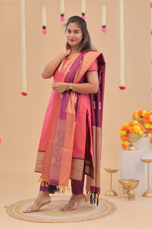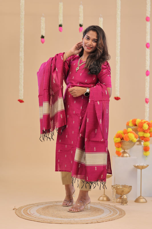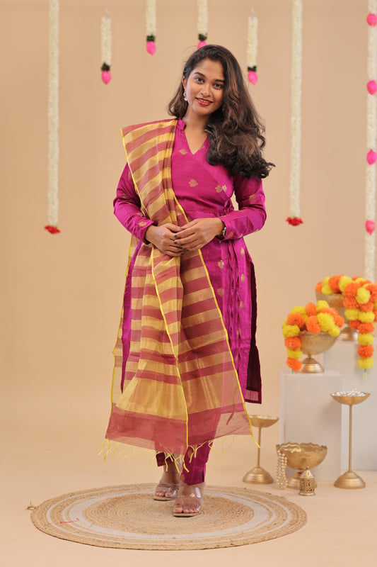 PREMIUM-MAGENTA RAW SILK SUIT