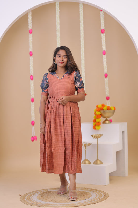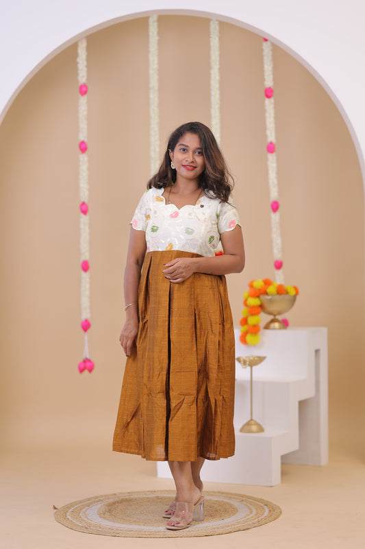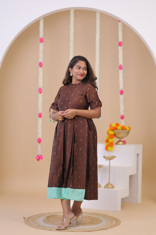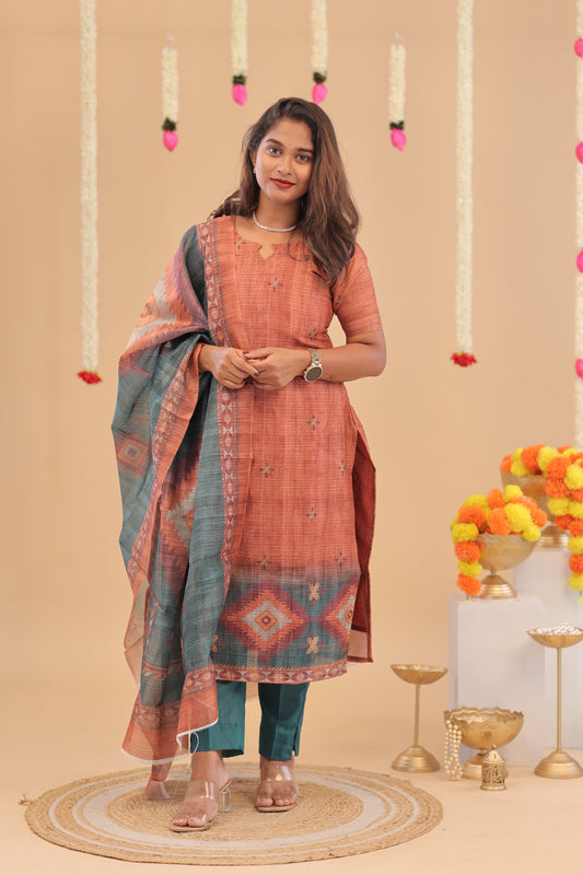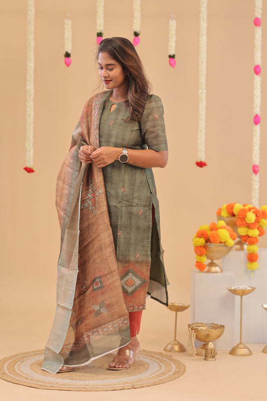 SEMI JUTE - RUST OLIVE Kurti set