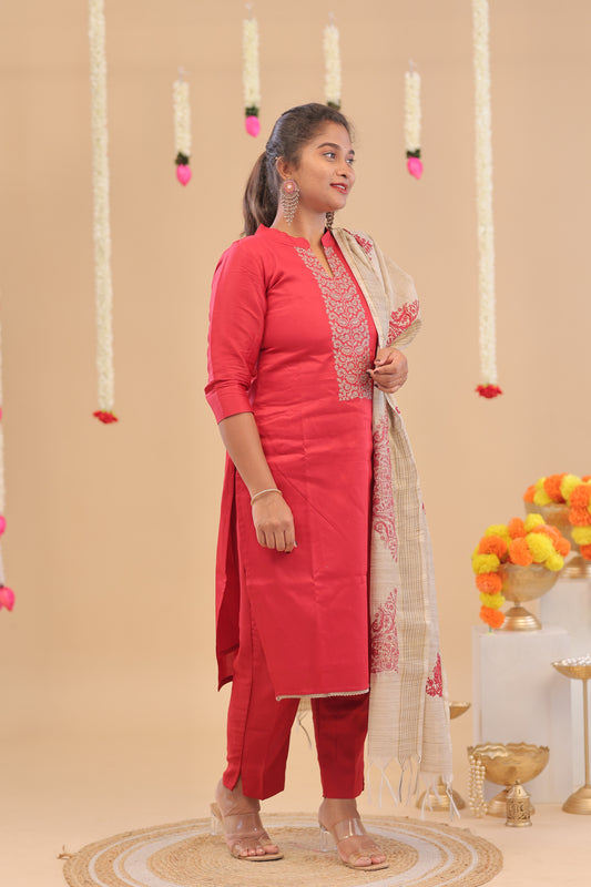 Premium -Wine- Chanderi suit