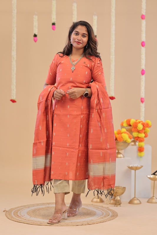 RAW SILK -PEACH SUIT