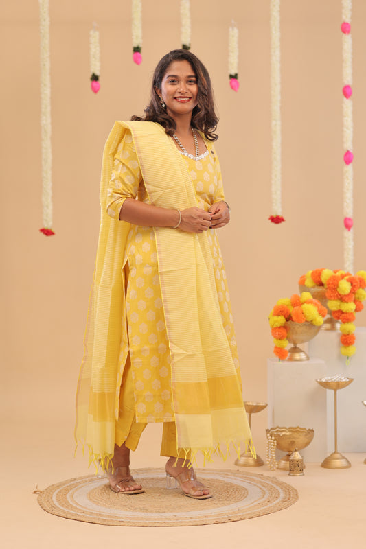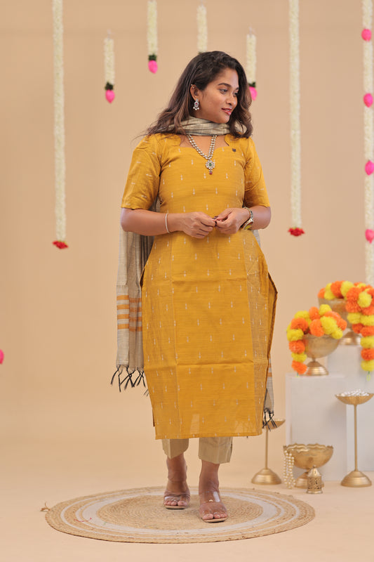 HANDLOOM -YELLOW Kalamkari SUIT