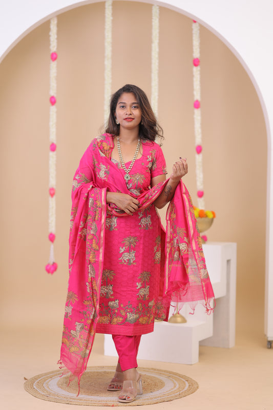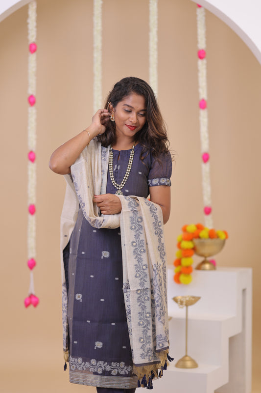 LUX-NIRANJANA-NAVY BLUE-JAMDHANI-3 pc set