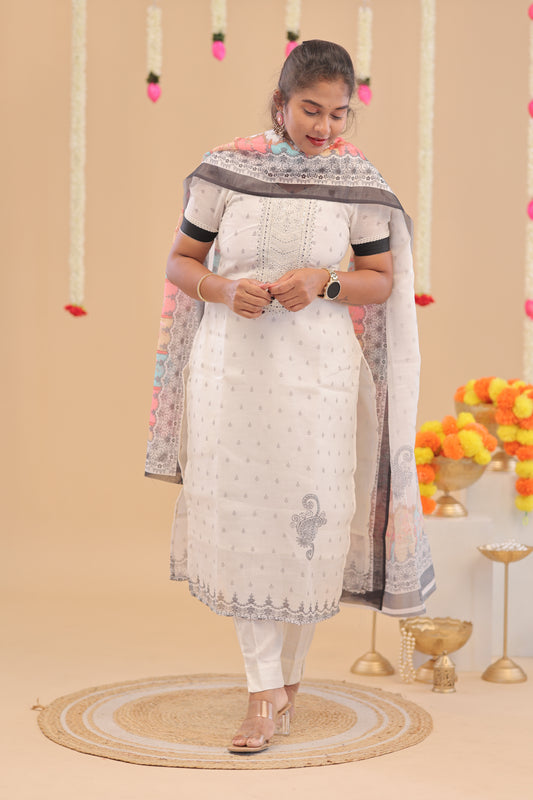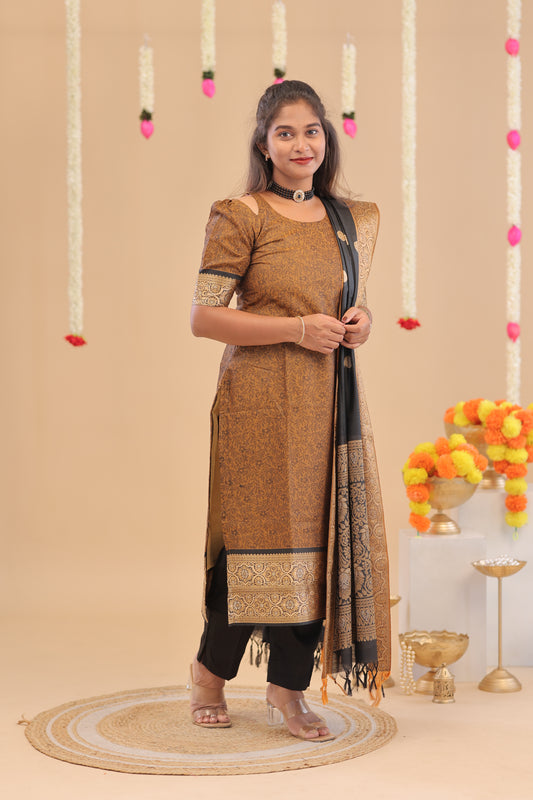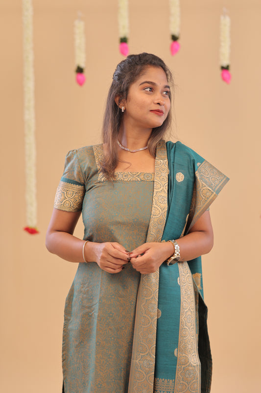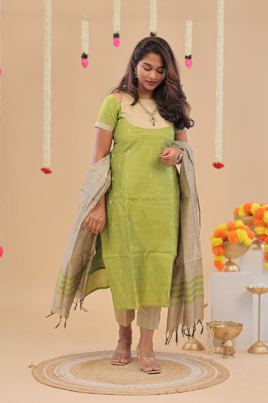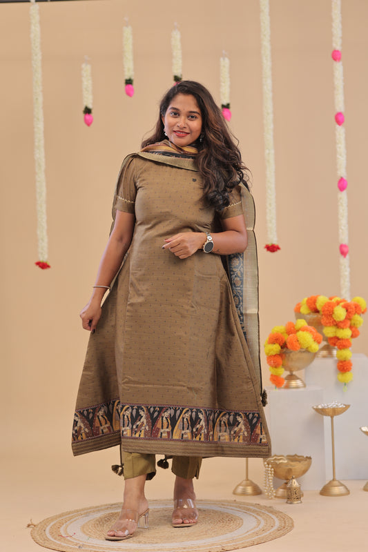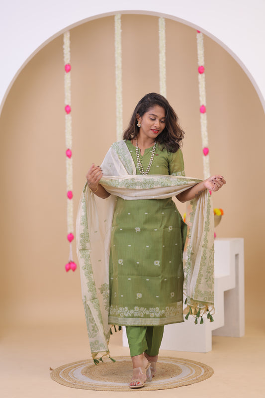 LUX-NIRANJANA-OLIVE-JAMDHANI-3 pc set