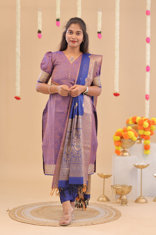 KANCHI-SILK COTTON-LAVENDER-ROYAL BLUE