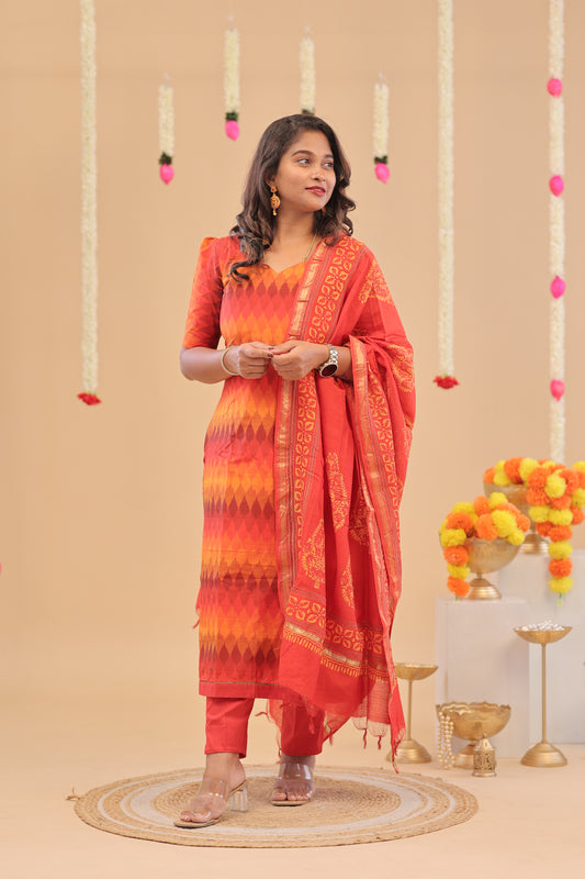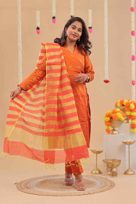 PREMIUM-ORANGE RAW SILK SUIT