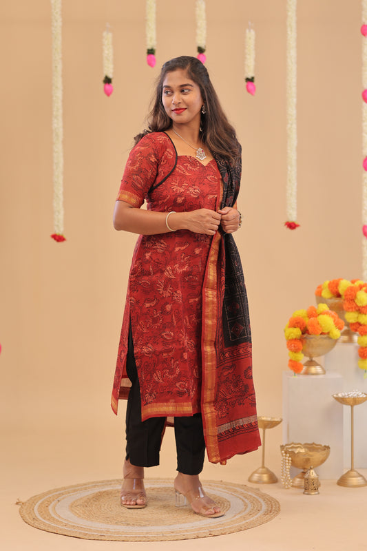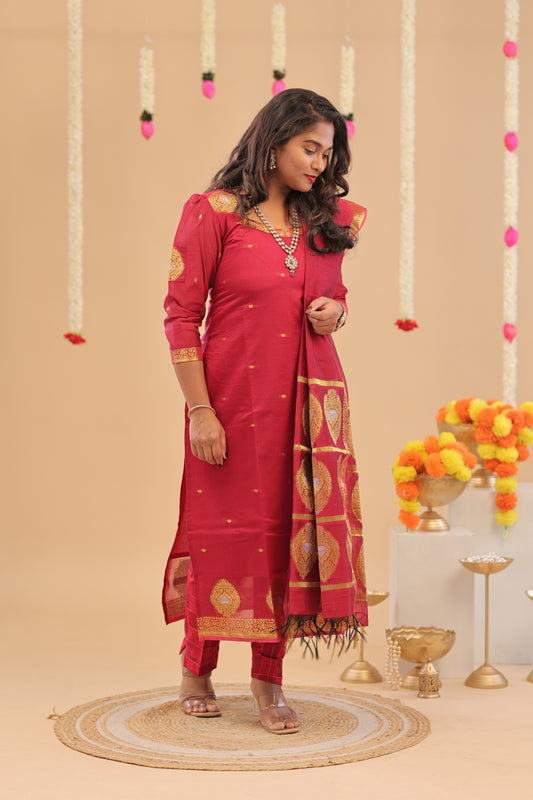 Premium-Mangalgiri-maroon suit