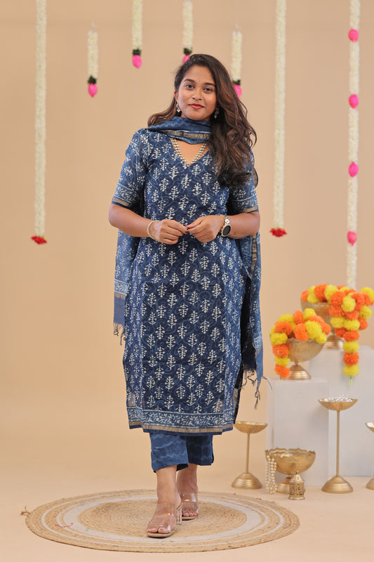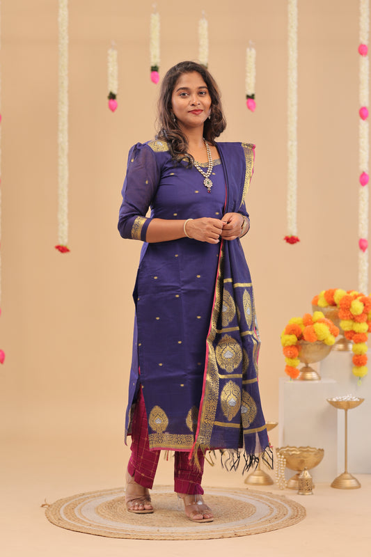 PREMIUM-KORA SILK navy blue Kurti set