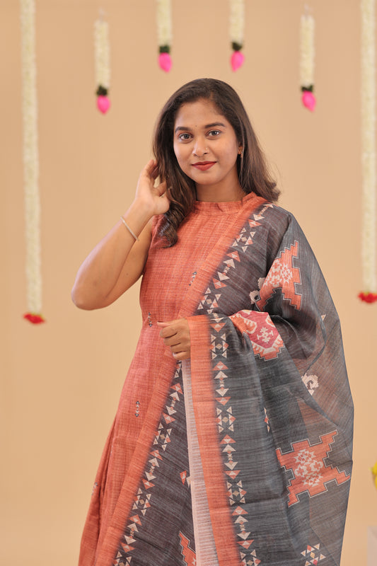 SEMI JUTE - RUST GREY Kurti set