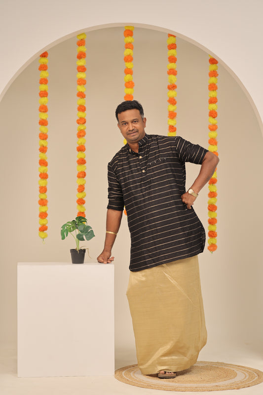 Black Stripes Mens Kurta