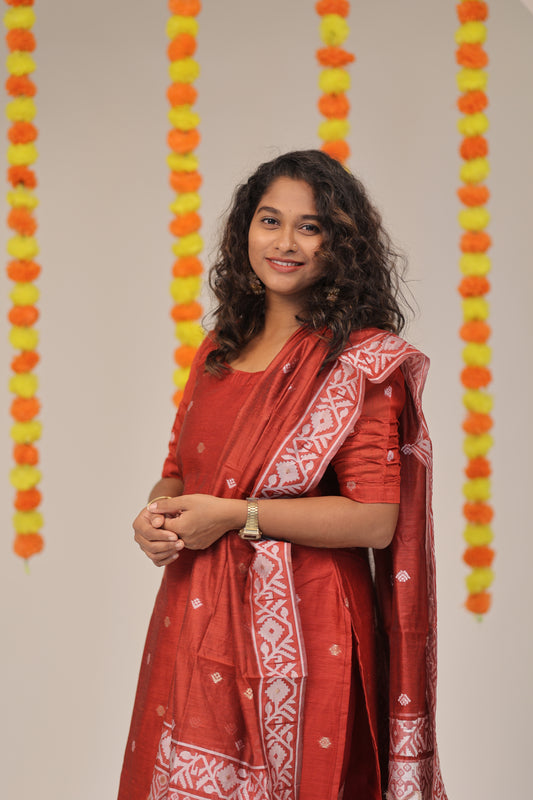 THUGIL - RAWSILK set - WHITE/REDRegular price Rs. 2,699.00Sale price Rs. 2,699.00 Regular priceUnit price / perRs. 3,200.00Sale