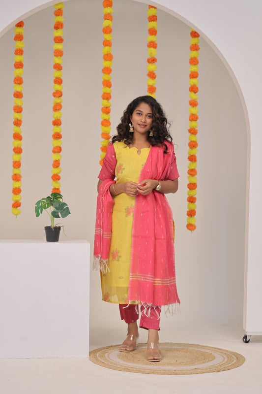 Poonguzhali-3 pc cotton sets - YELLOWRegular price Rs. 1,899.00Sale price Rs. 1,899.00 Regular priceUnit price / perRs. 2,099.00Sale
