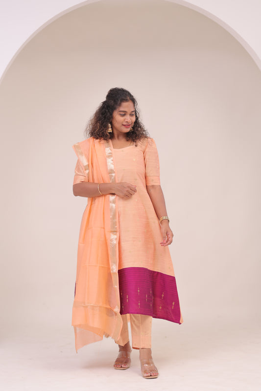 THUGIL - RAWSILK set - PEACH/MAGENTARegular price Rs. 2,699.00Sale price Rs. 2,699.00 Regular priceUnit price / perRs. 3,200.00Sale