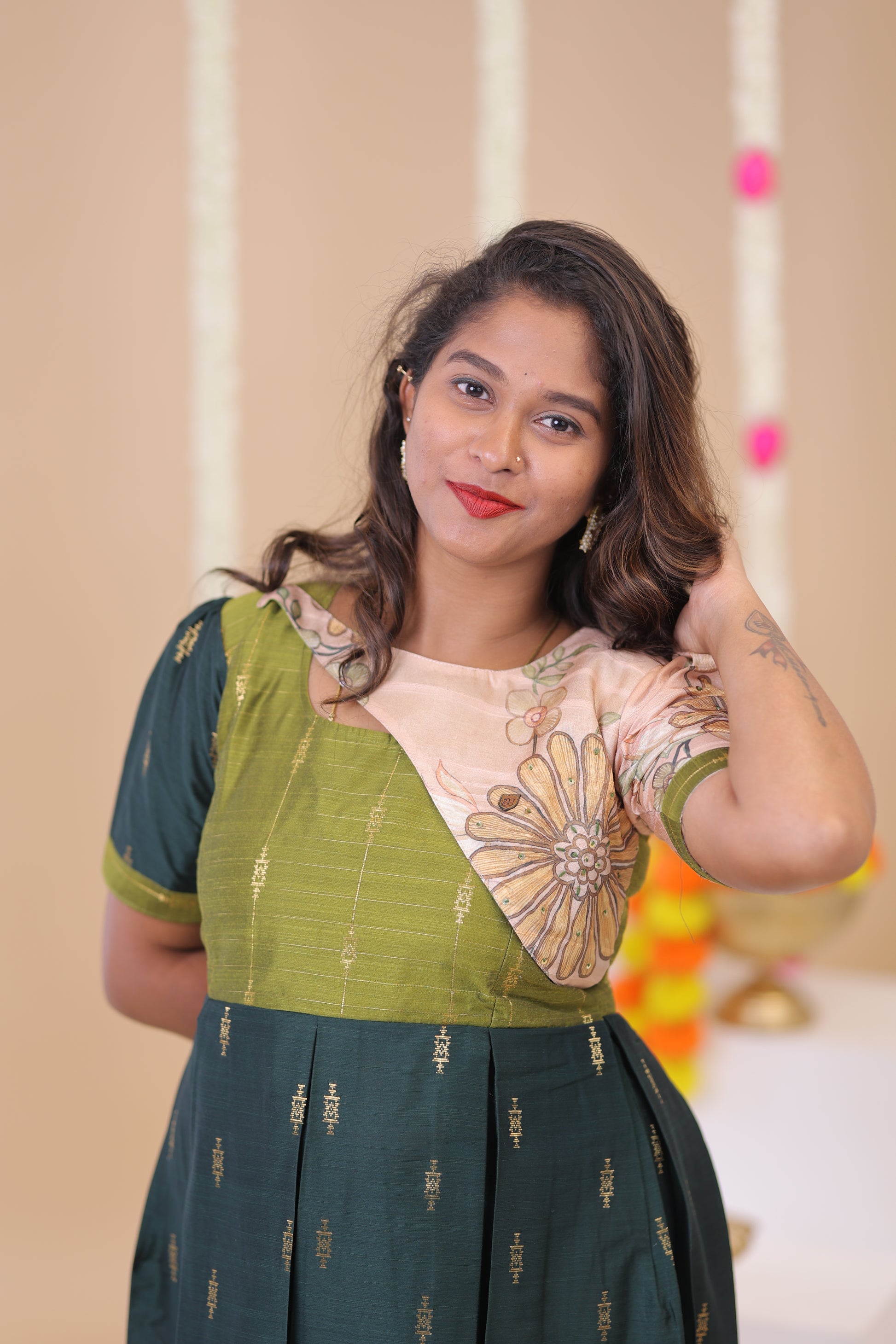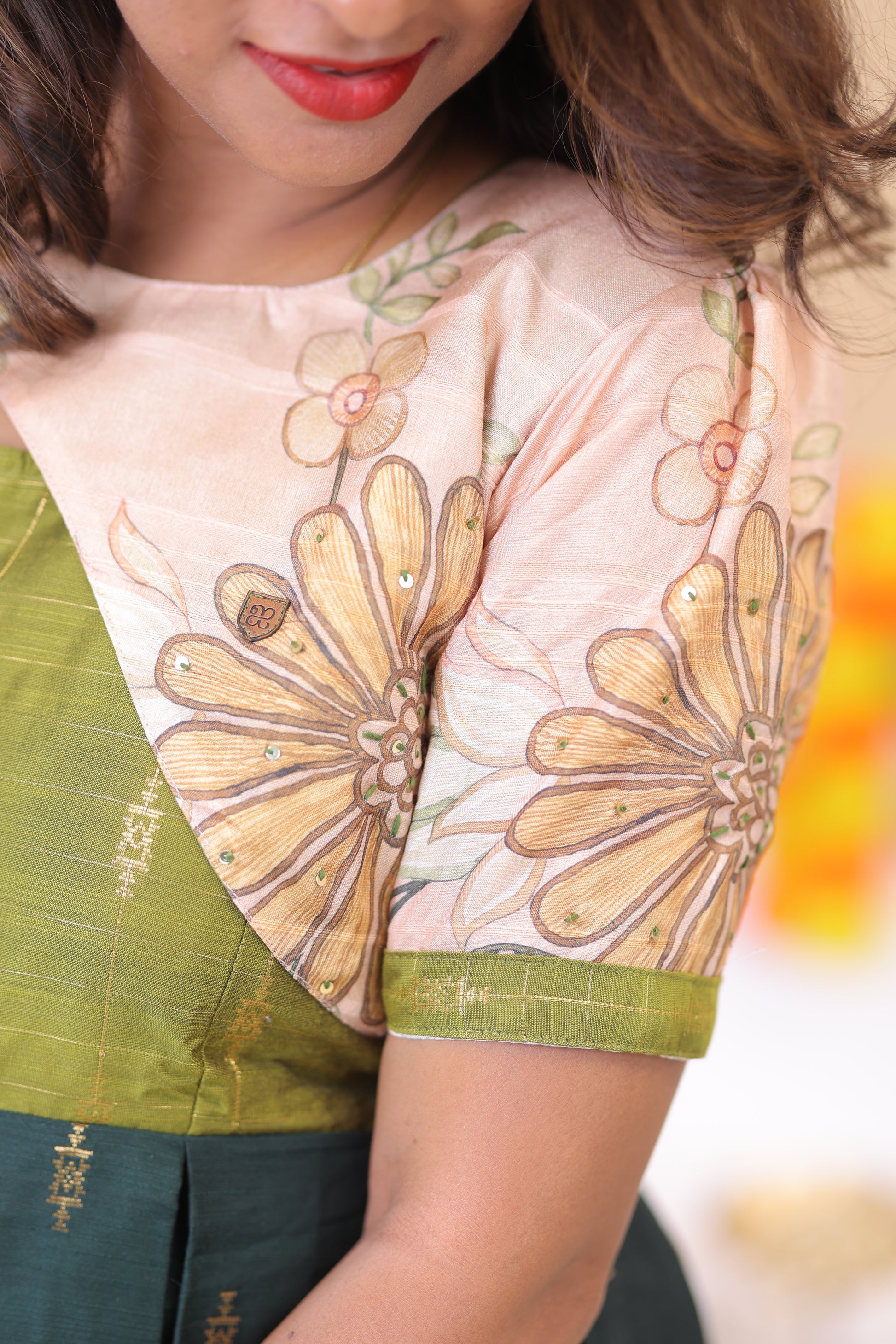 Sleeve with thread and sequence Embriodery