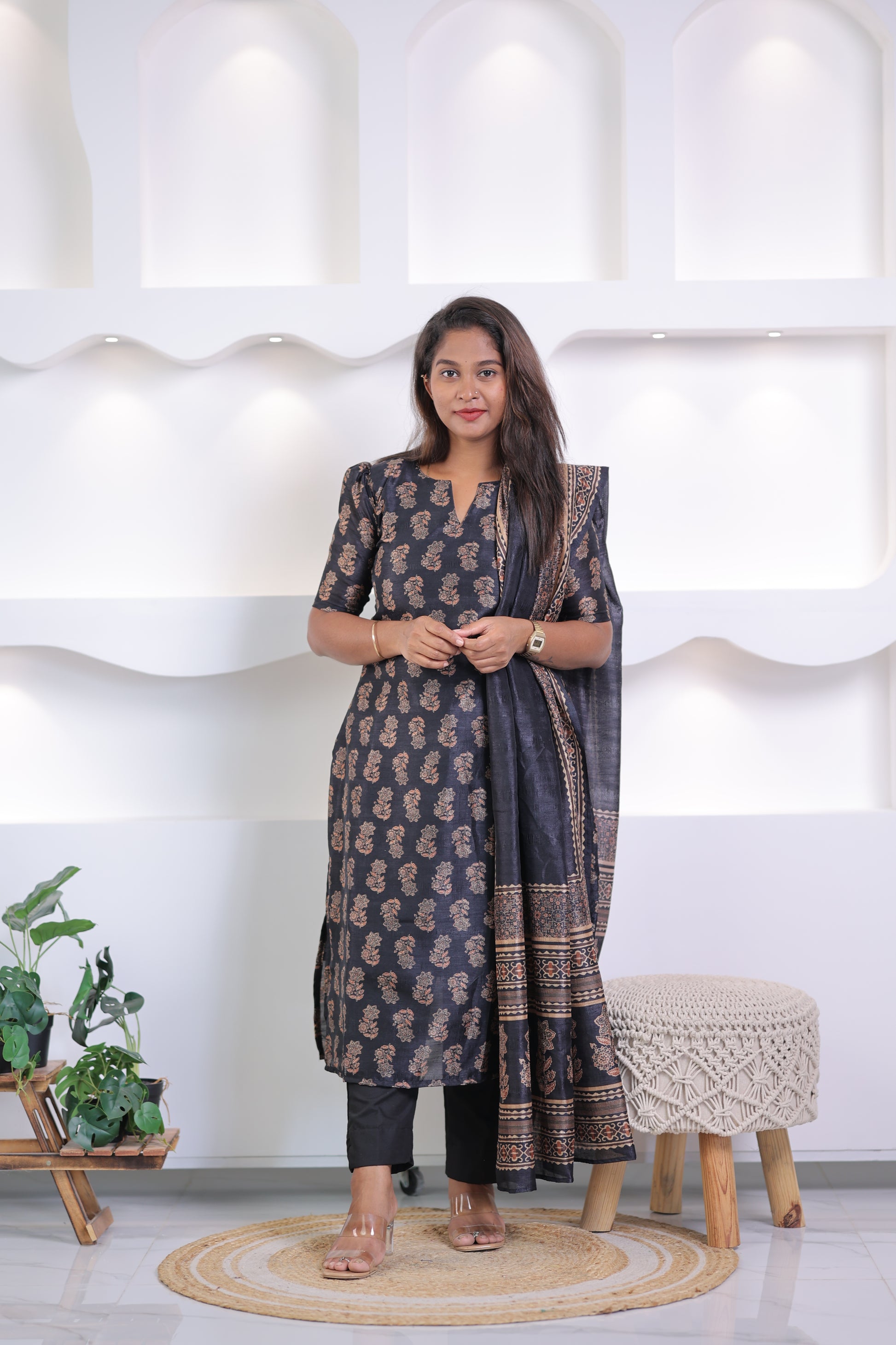 LUX-BLACK -AJRAK TUSSAR SUIT