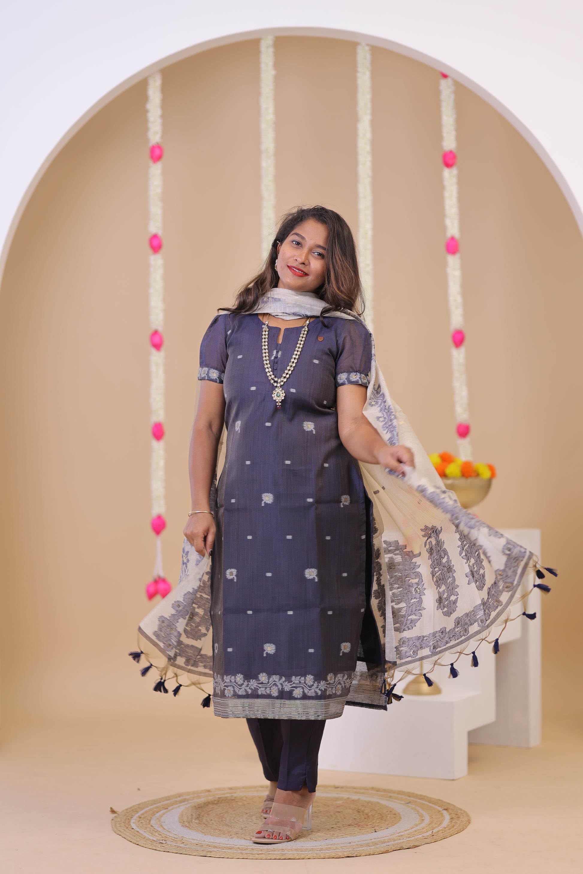LUX-NIRANJANA-NAVY BLUE-JAMDHANI-3 pc set