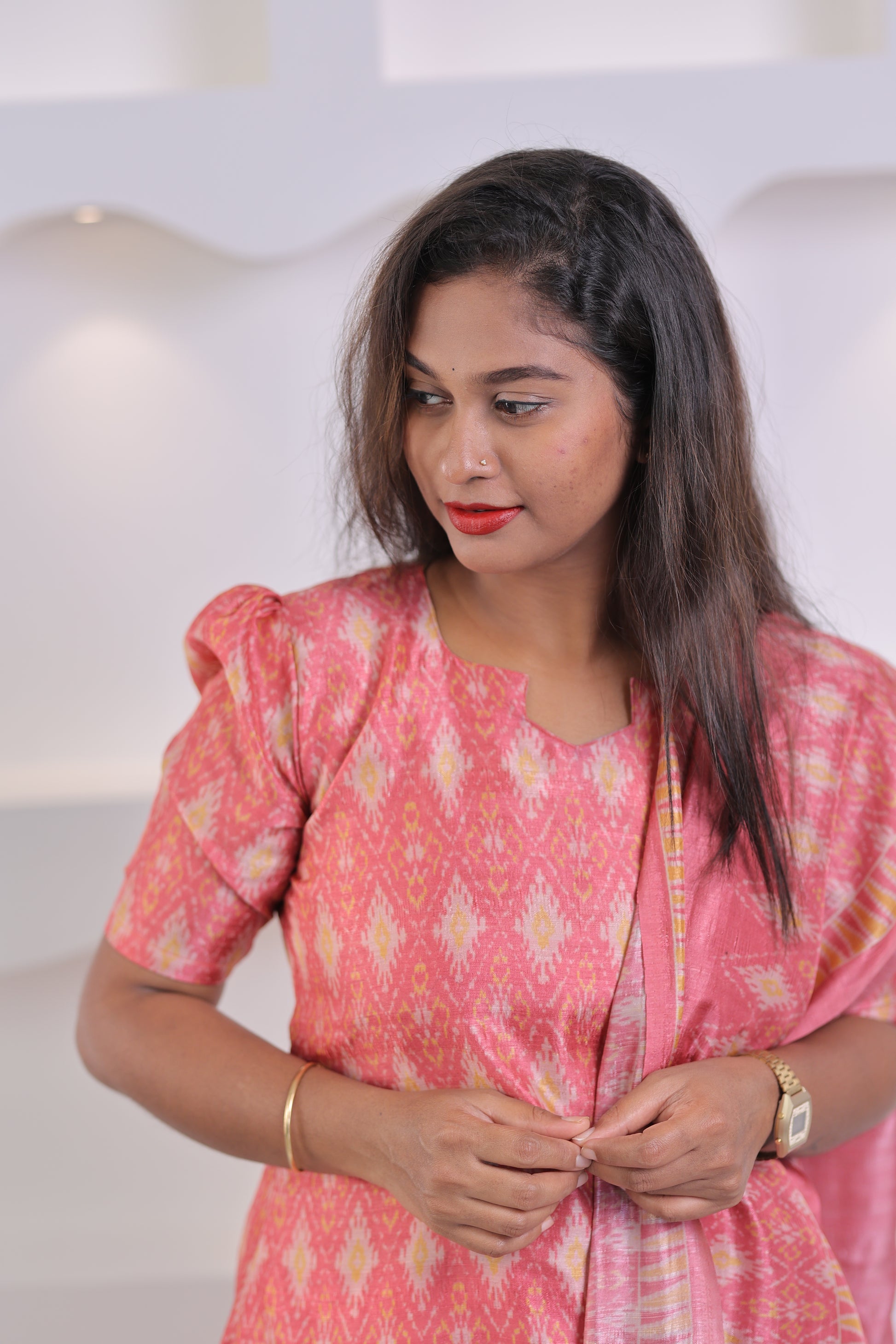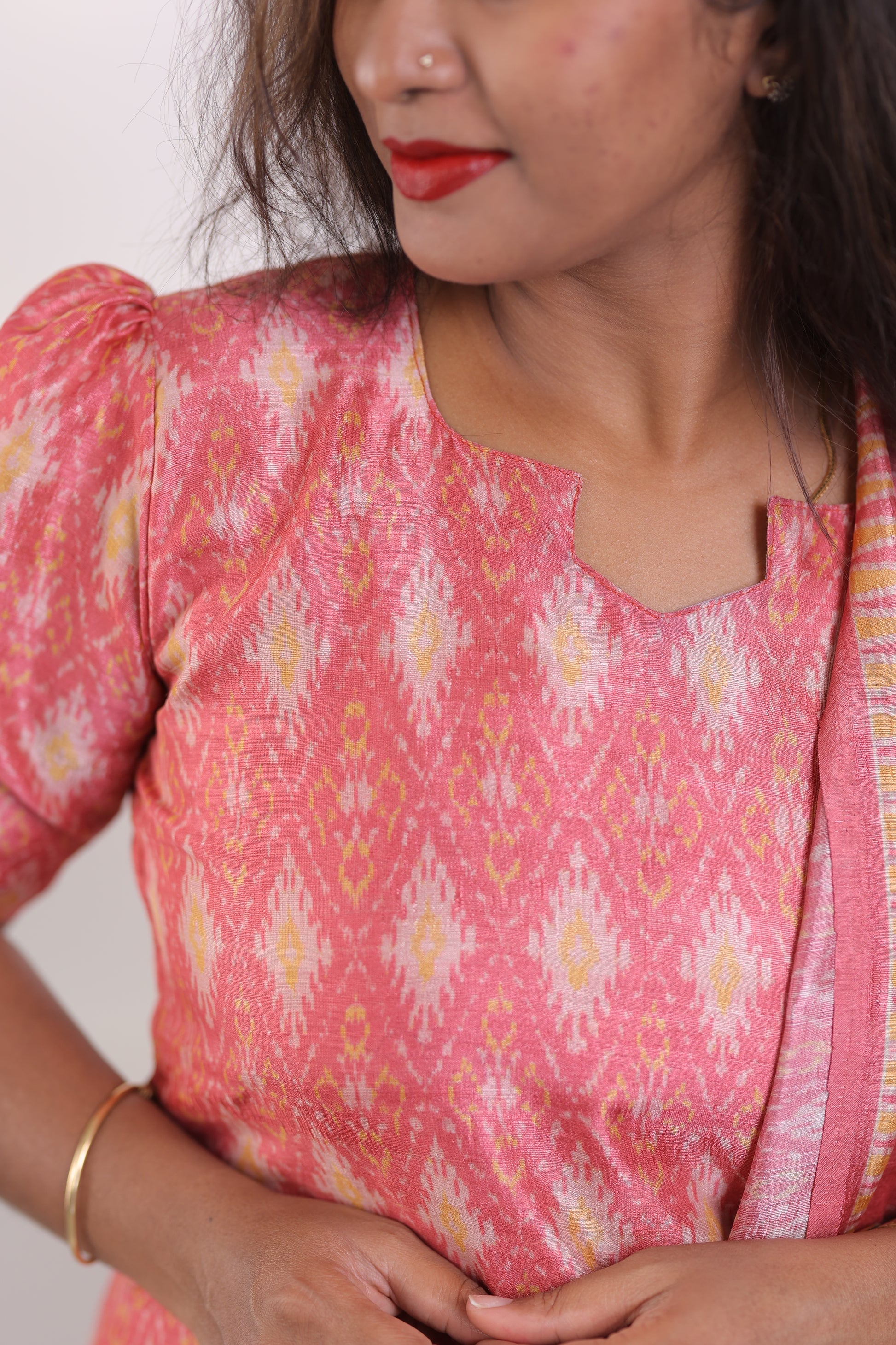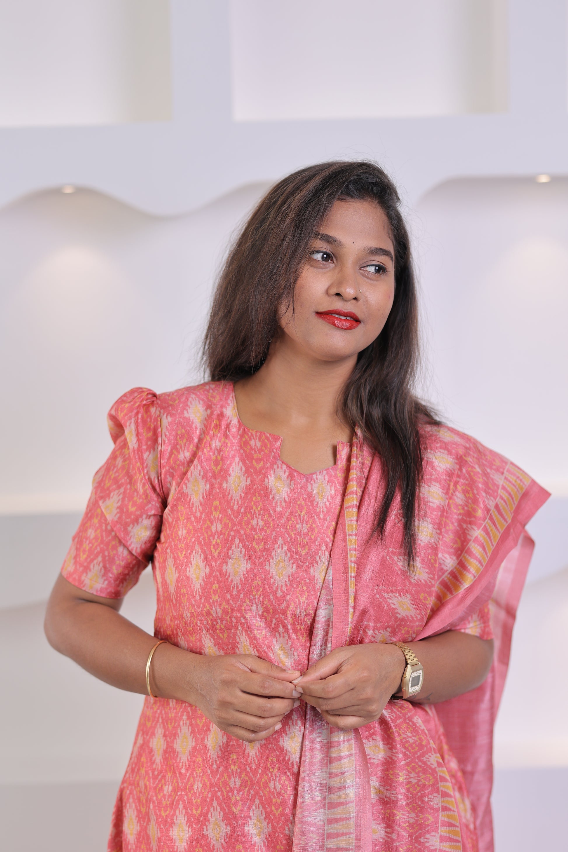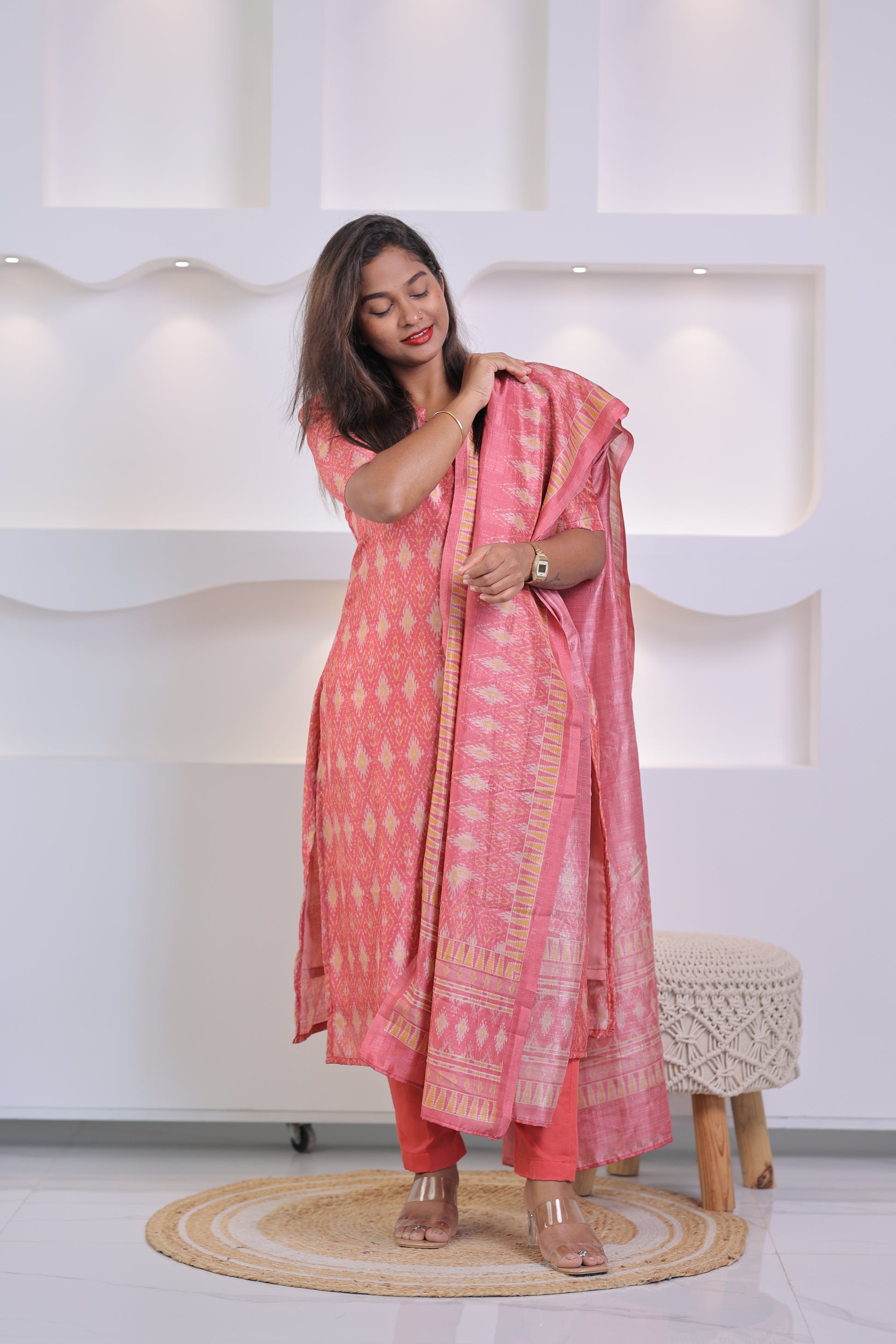 LUX-RED -IKKAT TUSSAR SUIT