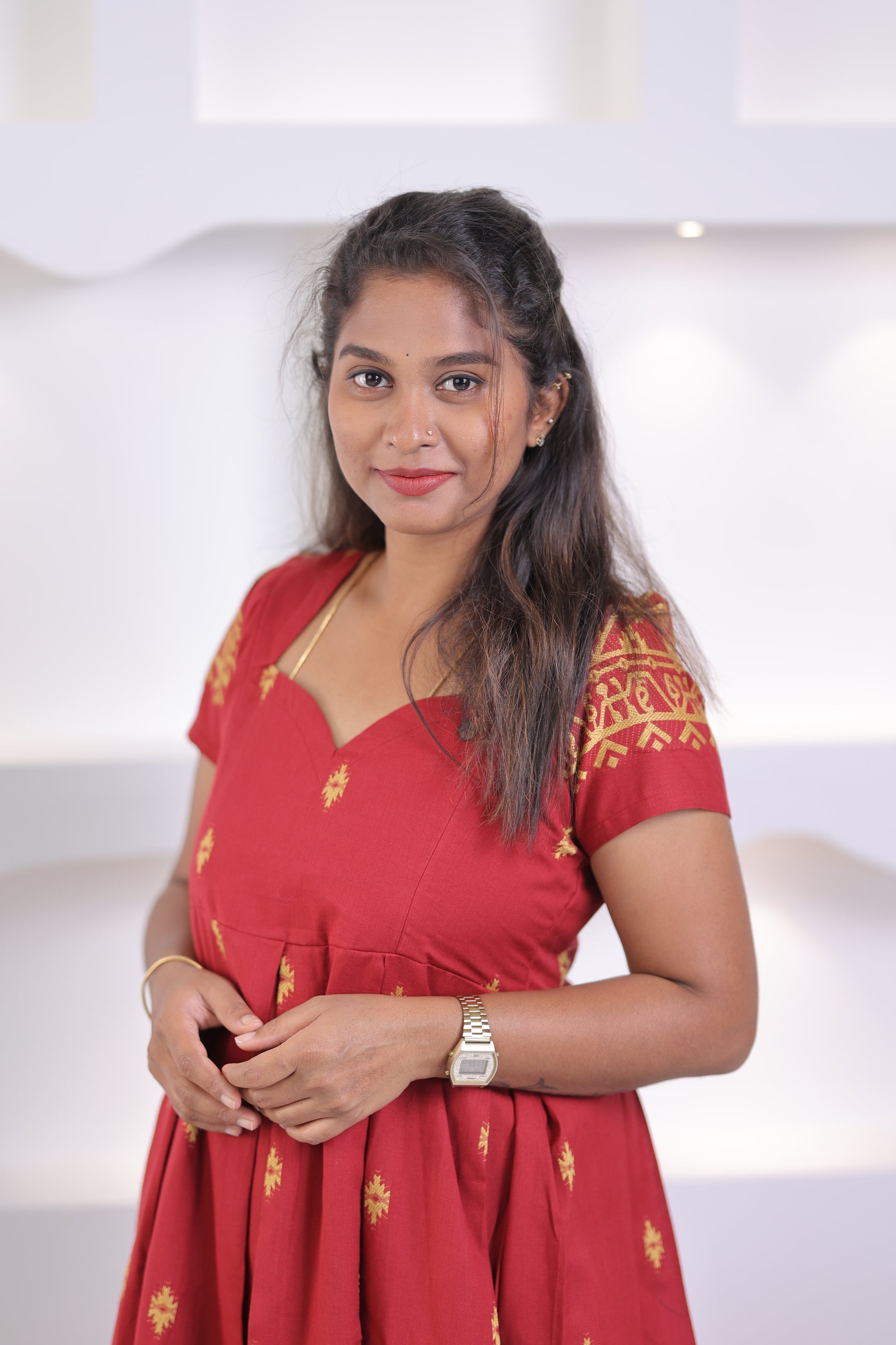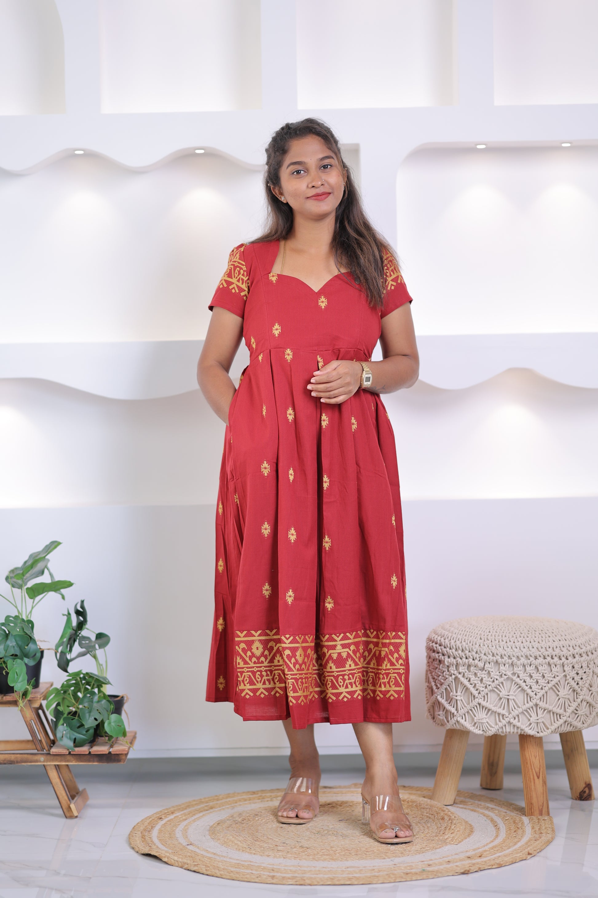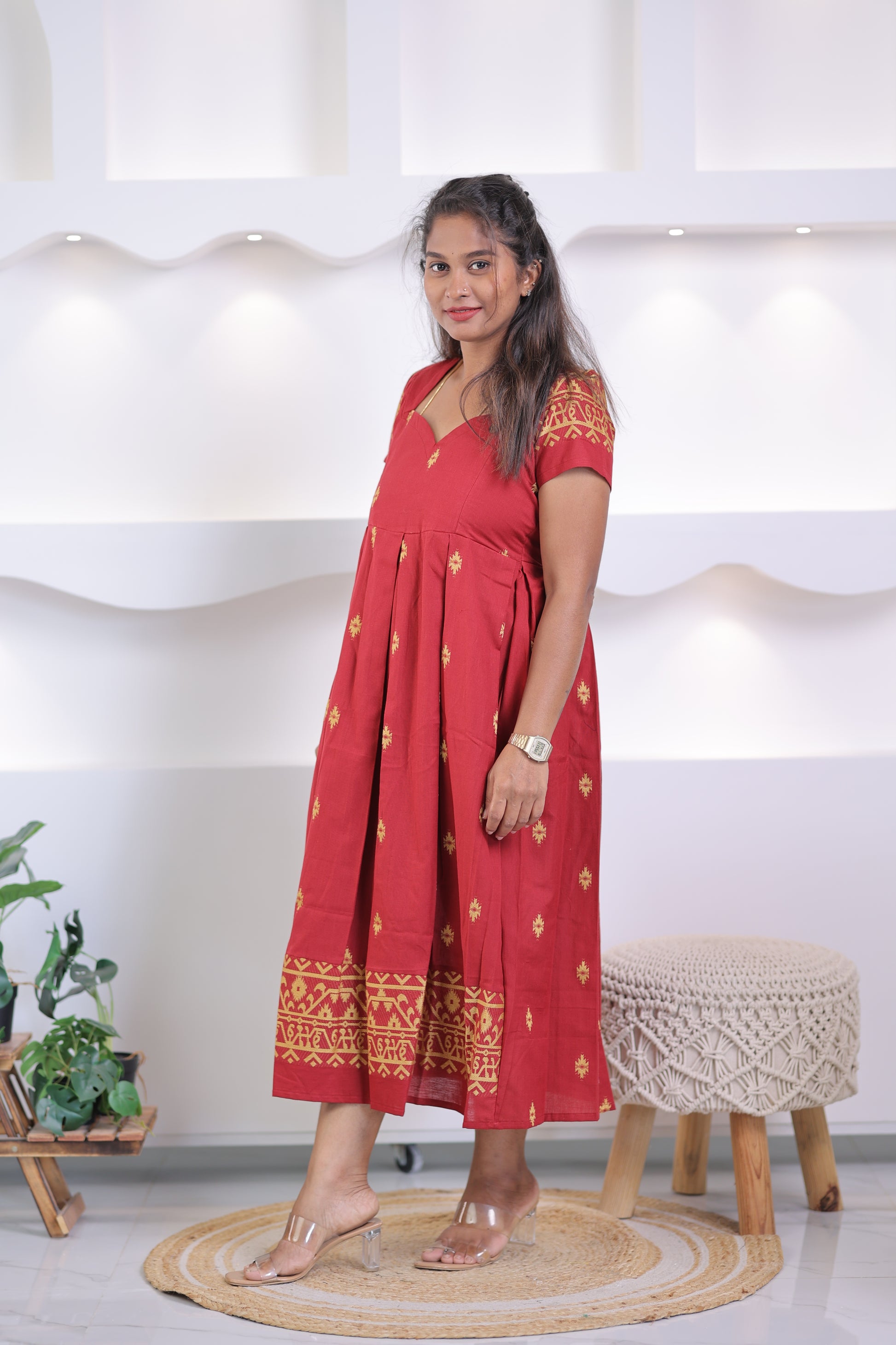 OFFICE WEAR-COTTON-Gown-RED CORAL
