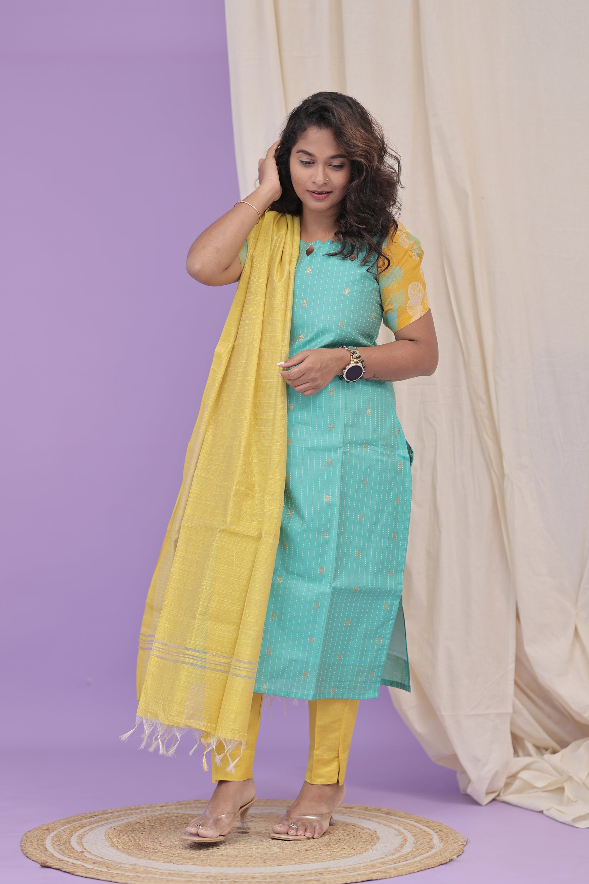 KAAJAL - teal yellow *Tussar Silk Kurti Set*
