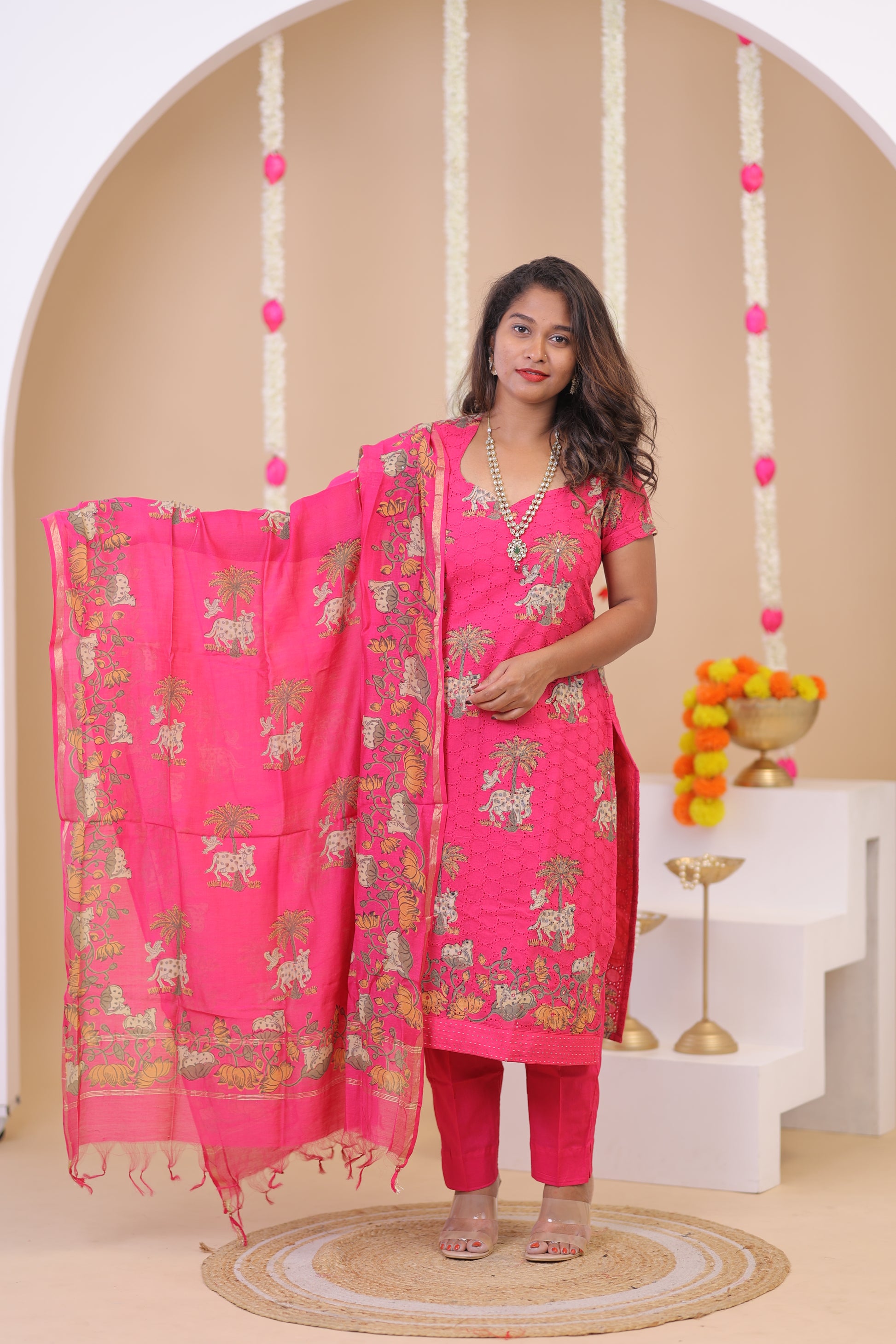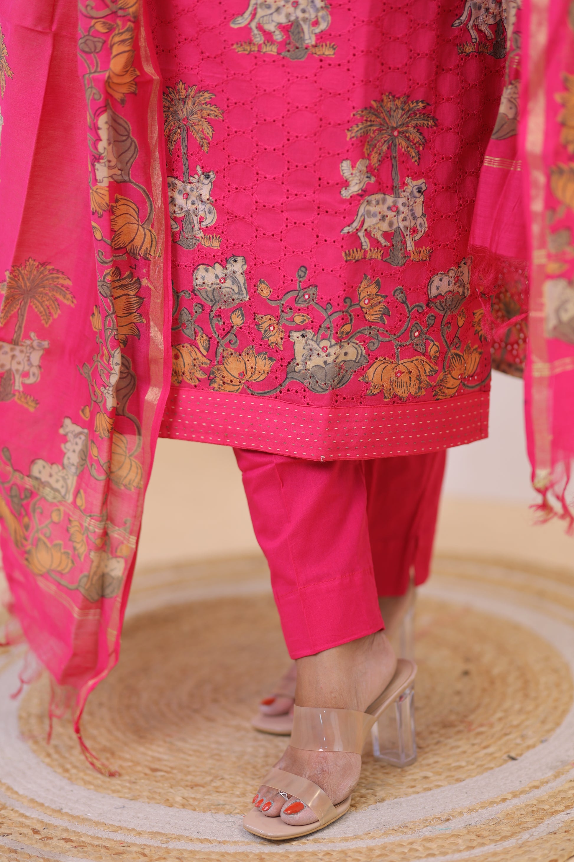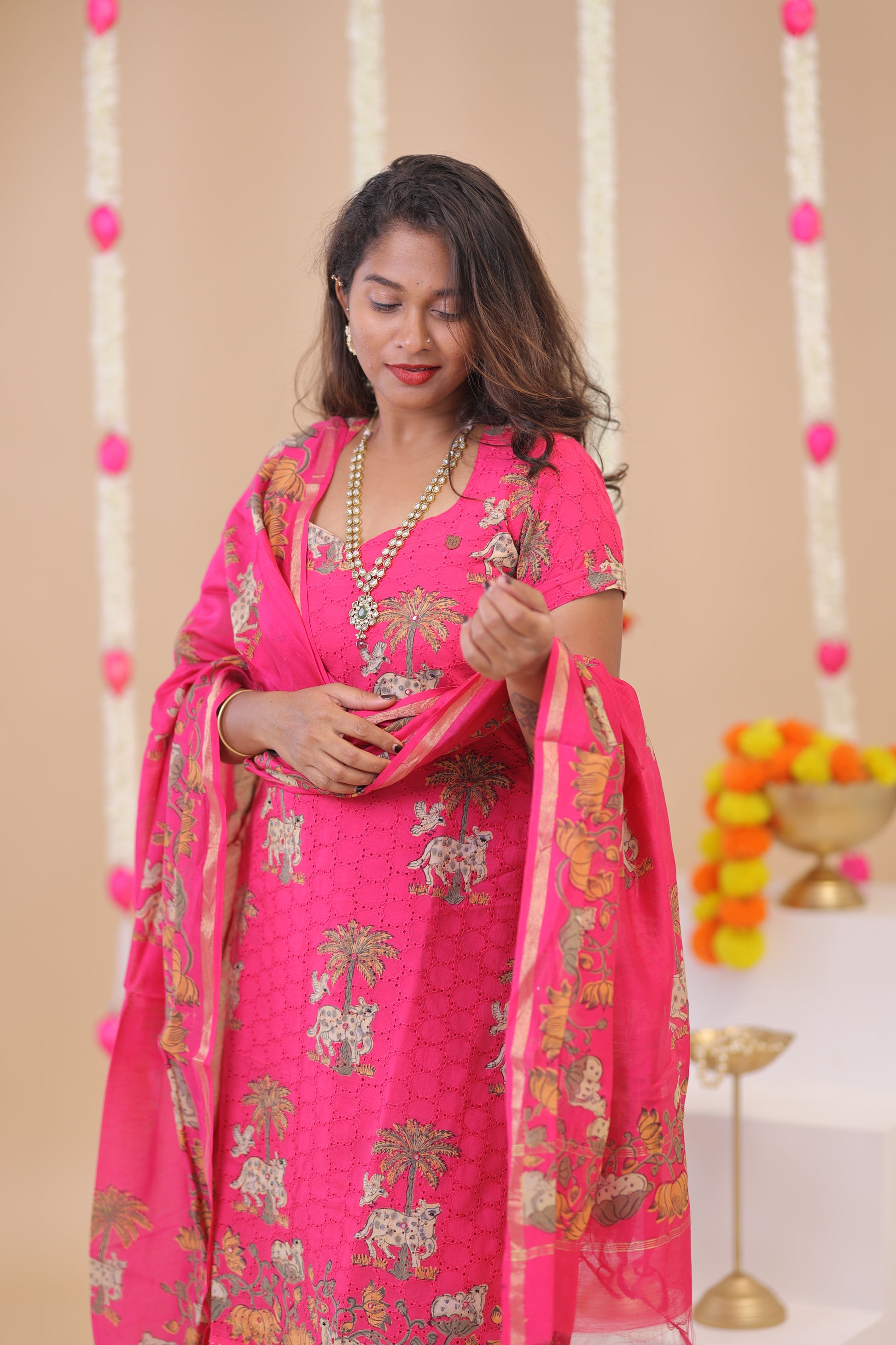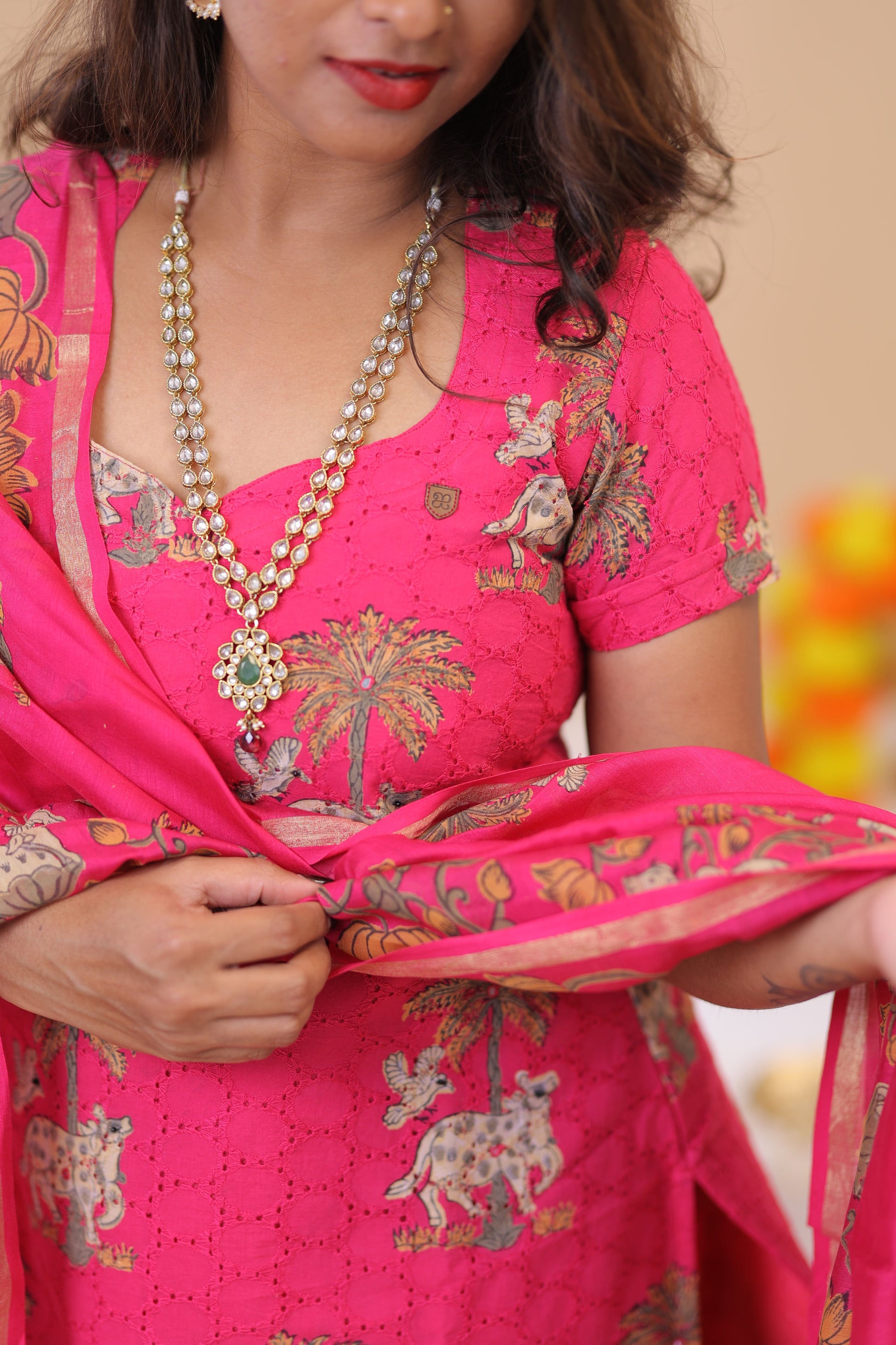 Pichwai printing all over front and back side of top . Bead work on pichwai print.