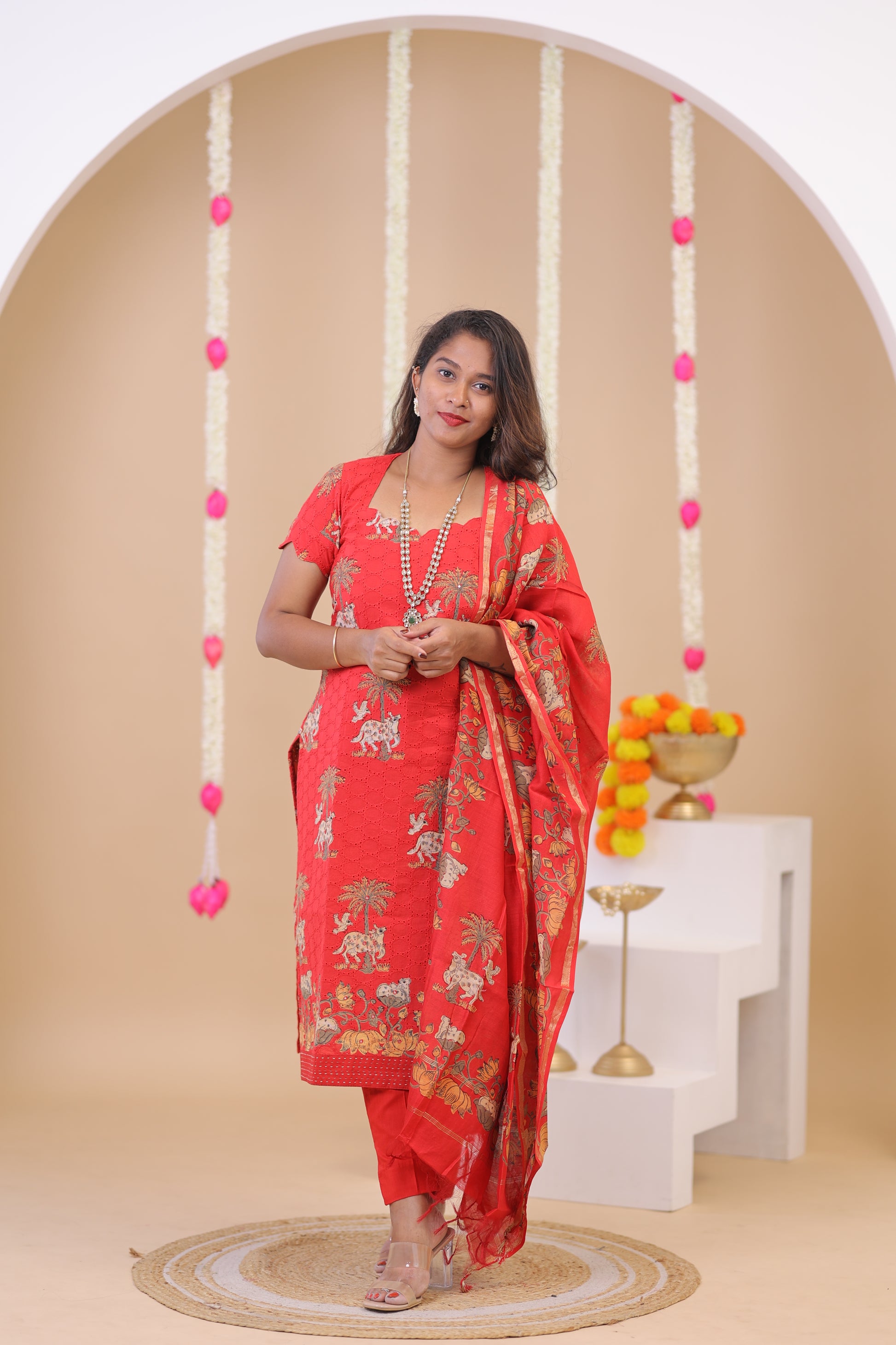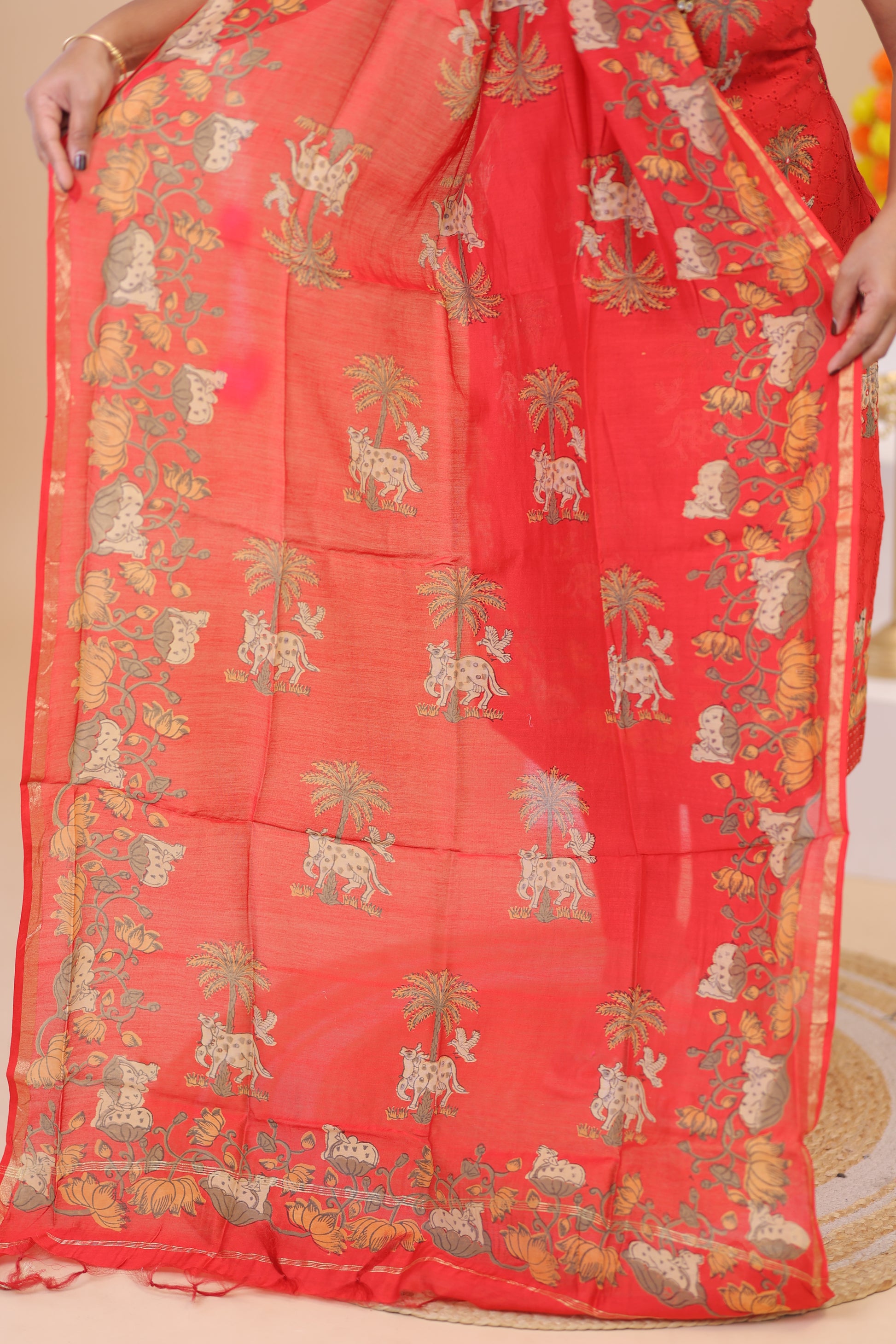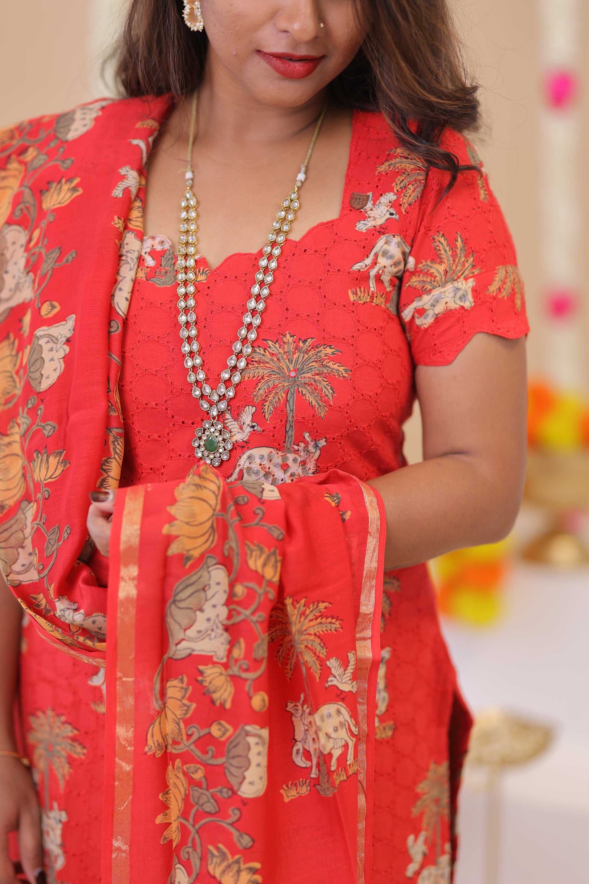Pichwai printing all over front and back side of top . Bead work on pichwai print.