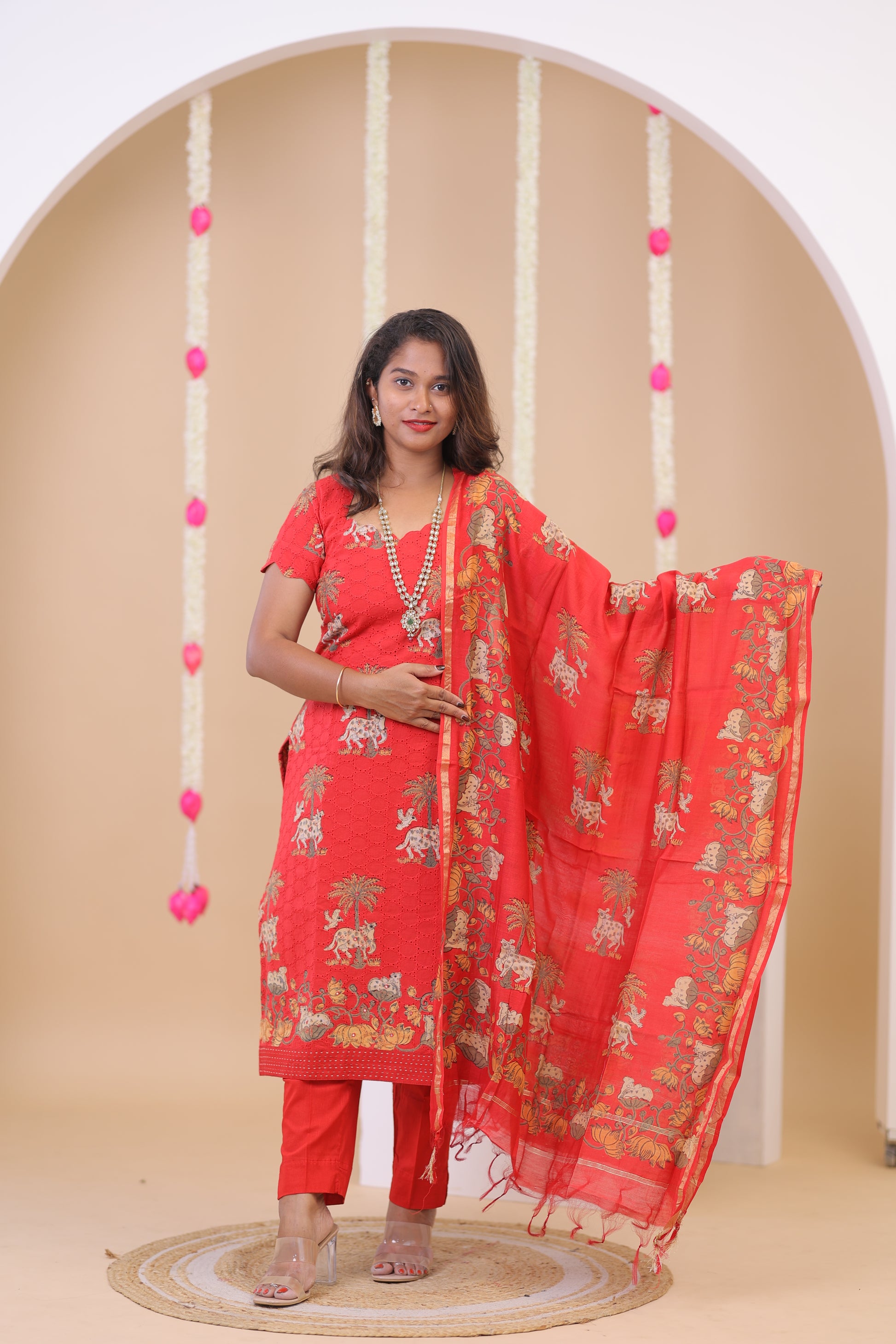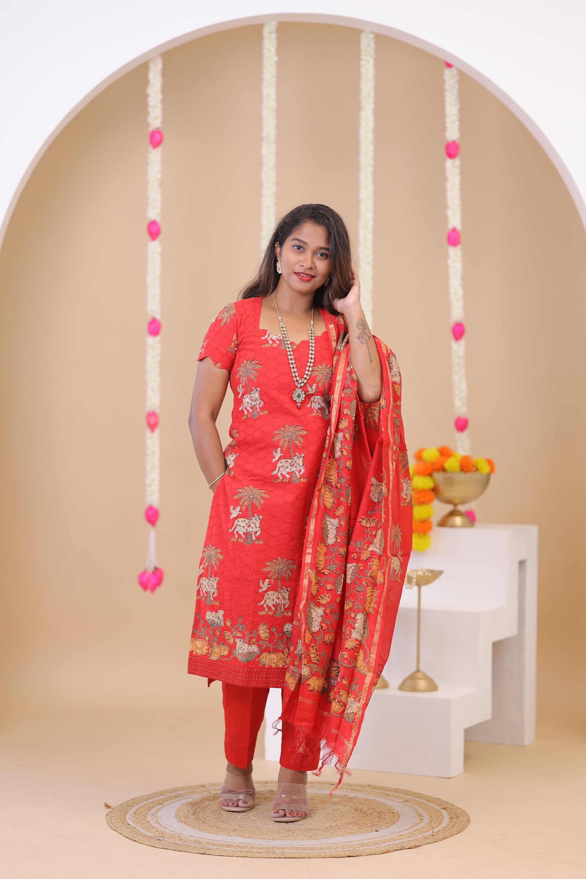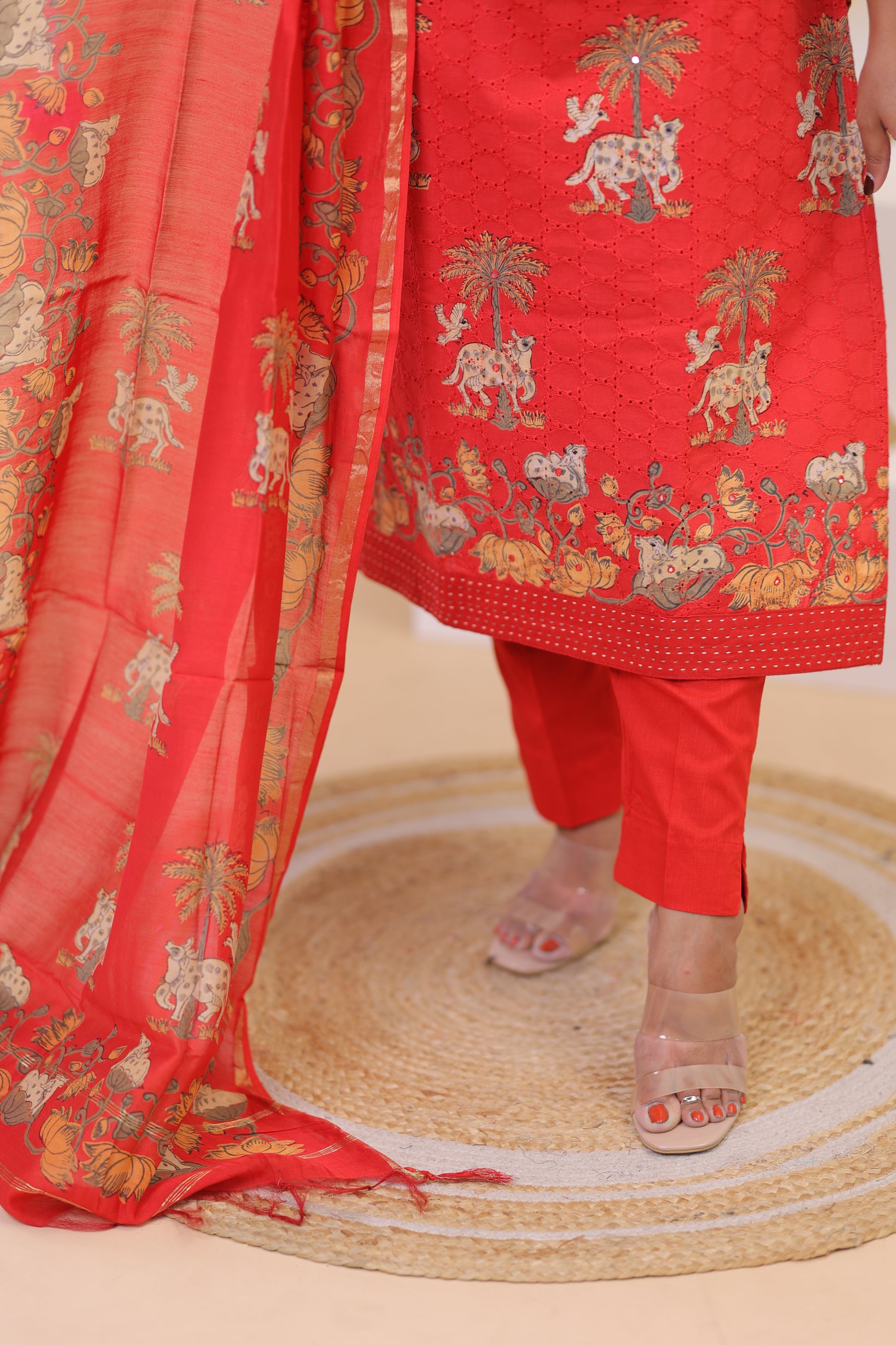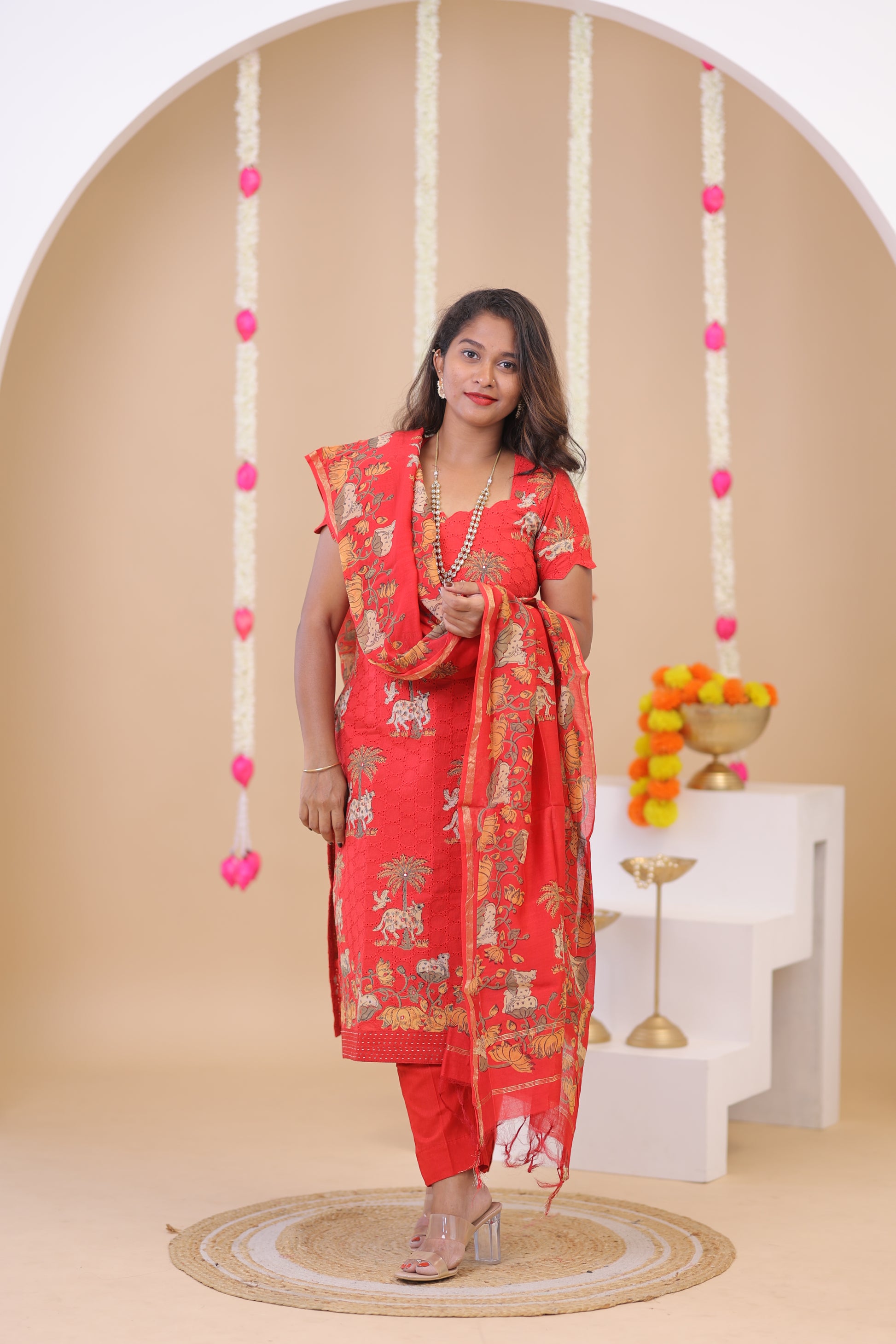 Pichwai printing all over front and back side of top . Bead work on pichwai print.